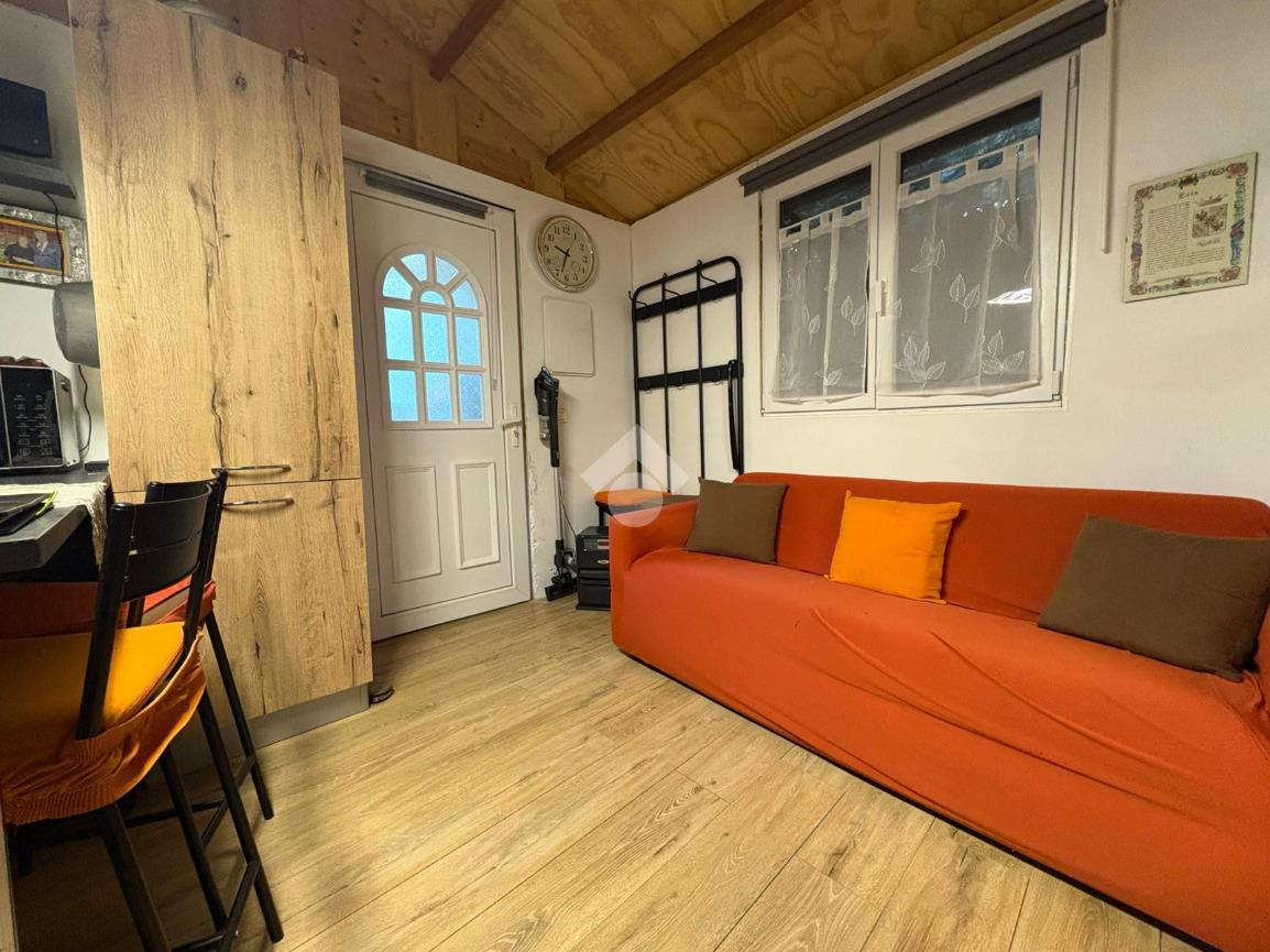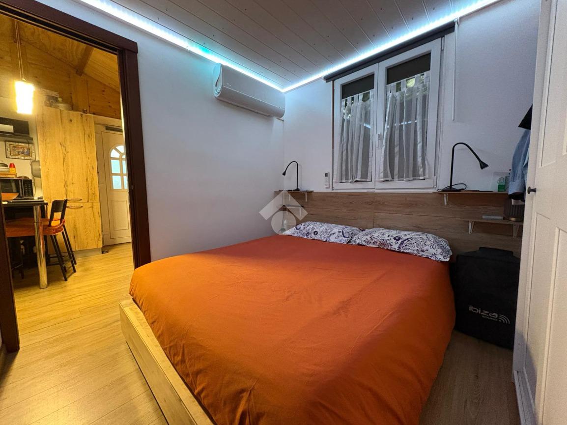 Corso Nizza, in località di Latte del comune di Ventimiglia, bungalow ideale per chi cerca un rifugio accogliente e funzionale. Situato all'interno di un tranquillo campeggio, la soluzione offre un ambiente moderno e ben organizzato. L'ingresso si apre su una veranda privata, perfetta per momenti di relax all'aperto, arredata con tavolo e sedie. All'interno, un soggiorno con angolo cottura si integra armoniosamente con lo spazio, mentre la camera da letto garantisce comfort e privacy. Il bagno finestrato aggiunge un tocco di praticità. Completa la proprietà un posto auto riservato. L'immobile viene venduto con mobilio moderno incluso, pronto per essere abitato. Una soluzione ideale per chi desidera vivere a contatto con la natura senza rinunciare alle comodità moderne.